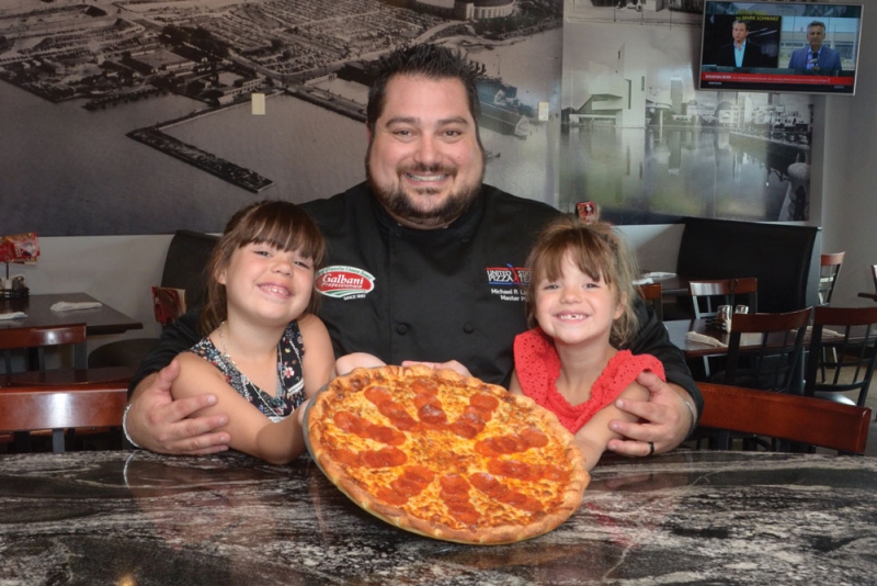 迈克尔•拉马卡和都市比萨(Metro Pizza)的约翰•阿里纳一起做馅饼