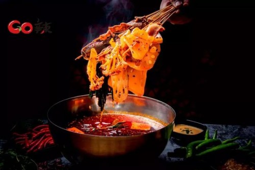 彼时,杭州还未出现有名气的串串店,GO辣也想碰碰运气。串串是出身四川的草根小吃,有广泛的群众基础,将牛肉、肥肠、藕片、腐竹等食材串在签子上,再用辣椒、红油“灌溉”,串串的魅力几乎无人能抵抗。除了这些传统的串类,GO辣在菜品中还加入了牛蛙、酸菜鱼、红糖糍粑等四川特色菜。